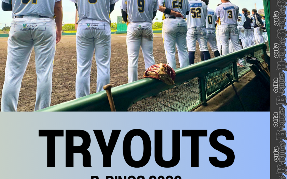 NEWS ニュース すべて お知らせ イベント グッズ メディア 2025.10.24選手退団のお知らせ 2025.10.21選手退団のお知らせ 2025.10.17球団イベント B-リングスvs大分野球侍真剣勝負 2025.10.172026シーズン 球団トライアウト実施および募集開始のお知らせ もっと見る 2025.10.24選手退団のお知らせ 2025.10.21選手退団のお知らせ 2025.10.17球団イベント B-リングスvs大分野球侍真剣勝負 2025.10.172026シーズン 球団トライアウト実施および募集開始のお知らせ もっと見る 2024.07.087 月 27 日・28 日 ホームゲーム親子無料招待について 2024.01.06大分B-リングスファンクラブイベントのお知らせ 2023.05.15【5月21日】※入場料無料※「観戦チャンスデー」📣 2023.04.29【5/3.4 & 5/6.7】NEXT HOME GAME もっと見る 2023.01.04【数量限定】2023ハッピーバック販売のお知らせ 2023.01.03【限定10名】2023年度 オフィシャルファンクラブ『UCHIKAWA PREMIUM MEMBERS』 2023.01.032023年度 オフィシャルファンクラブ『B-FAN』受付開始! 2022.07.07【ファンクラブ限定】七夕リリース もっと見る 2023.04.07YouTubeに公開中! INSIDE B-RINGS 〜大分B-リングス内川聖一選手ホームデビュー戦〜 2022.04.27球団応援歌『進めB-RINGS』CDリリース☆ 2022.04.01ホームゲームをYouTube でLIVE配信行います! 2022.01.132021シーズンの振り返り動画をYouTubeにアップしました! もっと見る
