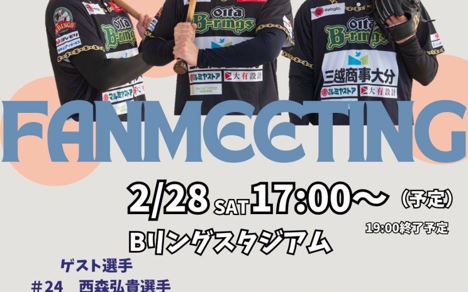NEWS ニュース すべて お知らせ イベント グッズ メディア 2026.02.22ファンミーティング開催! 2026.02.15臼杵キャンプイン! 2026.01.23B-リングス2026応援ガール募集!! 2026.01.16大分B-リングススタジアムMCオーディション開催! もっと見る 2026.02.22ファンミーティング開催! 2026.02.15臼杵キャンプイン! 2026.01.23B-リングス2026応援ガール募集!! 2026.01.16大分B-リングススタジアムMCオーディション開催! もっと見る 2024.07.087 月 27 日・28 日 ホームゲーム親子無料招待について 2024.01.06大分B-リングスファンクラブイベントのお知らせ 2023.05.15【5月21日】※入場料無料※「観戦チャンスデー」📣 2023.04.29【5/3.4 & 5/6.7】NEXT HOME GAME もっと見る 2023.01.04【数量限定】2023ハッピーバック販売のお知らせ 2023.01.03【限定10名】2023年度 オフィシャルファンクラブ『UCHIKAWA PREMIUM MEMBERS』 2023.01.032023年度 オフィシャルファンクラブ『B-FAN』受付開始! 2022.07.07【ファンクラブ限定】七夕リリース もっと見る 2023.04.07YouTubeに公開中! INSIDE B-RINGS 〜大分B-リングス内川聖一選手ホームデビュー戦〜 2022.04.27球団応援歌『進めB-RINGS』CDリリース☆ 2022.04.01ホームゲームをYouTube でLIVE配信行います! 2022.01.132021シーズンの振り返り動画をYouTubeにアップしました! もっと見る